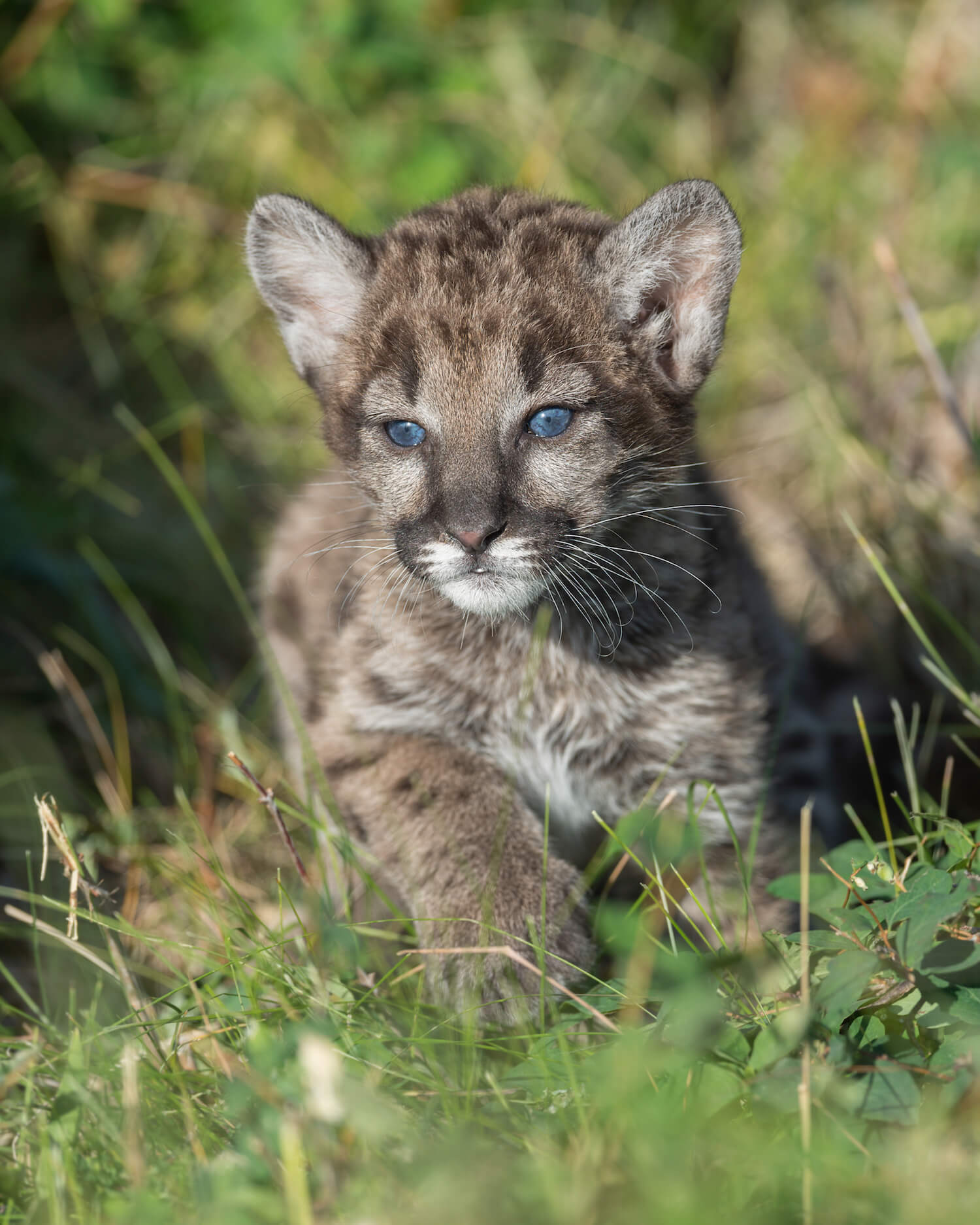 - Puma kittens are born with spots and blue eyes, but the spots fade as they grow and their eyes turn yellow or green
