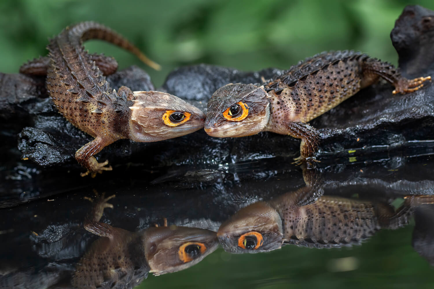- Unlike most reptiles, red-eyed crocodile skinks are devoted parents - both mom and dad guard their single egg until it hatches